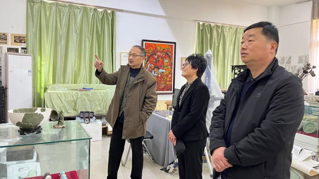 本站訊 3月20日,開封市文化藝術界聯合會主席甘桂芬、市美術家協會主席劉艷會一行到開封大學河南省示范性勞模和工匠人才創新工作室考察指導工作。