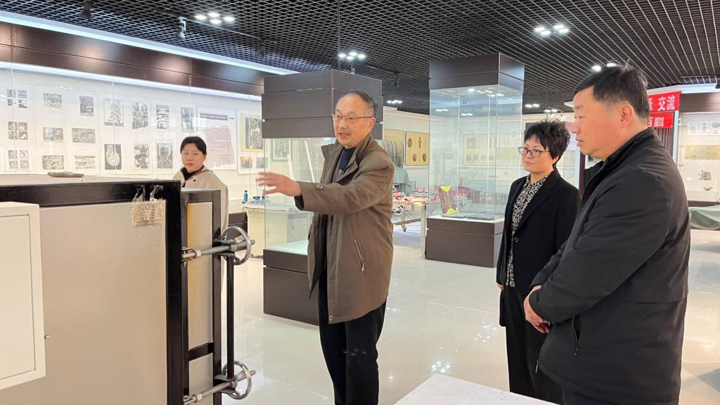 魏躍進教授向市文聯領導介紹了勞模工作室與開封大學大觀博物館共同搭建文化傳承與創新育人平臺開展工作的情況。平臺立足高校、面向社會,利用人才與設備的優勢,圍繞藝術設計人才培養,開展藝術創作和文化創意產品的開發,取得了較好的成績。隨后,魏躍進教授與市文聯領導就勞模工作室在高校人才培養、科學研究、社會服務以及文化高地建設中所發揮的重要作用進行了深入的交流和探討。