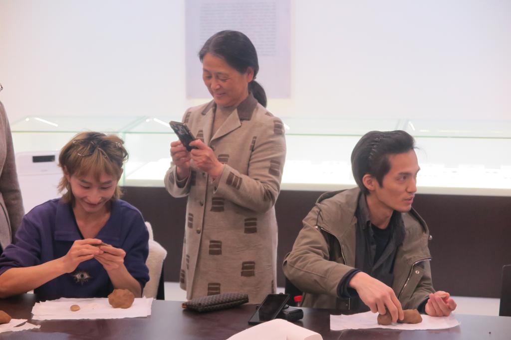 清華美院師生聽取了魏躍進教授對開封歷史文化的介紹,仔細參觀了博物館陳展的藏品。文中言教授對大觀博物館文化傳承和創新育人平臺建設給予了高度評價。他表示,大觀博物館藏品豐富,尤其是宋代陶模,真實、接地氣,方寸之間,盡顯宋人生活情致,具有極高的藝術價值。對宋代陶模開展研究,不僅可以提升學生的人文、審美素養,同時有助于提高學生的專業技能。隨后,文中言教授師生一行來到體驗廳,親身體驗宋代陶模的翻制過程。