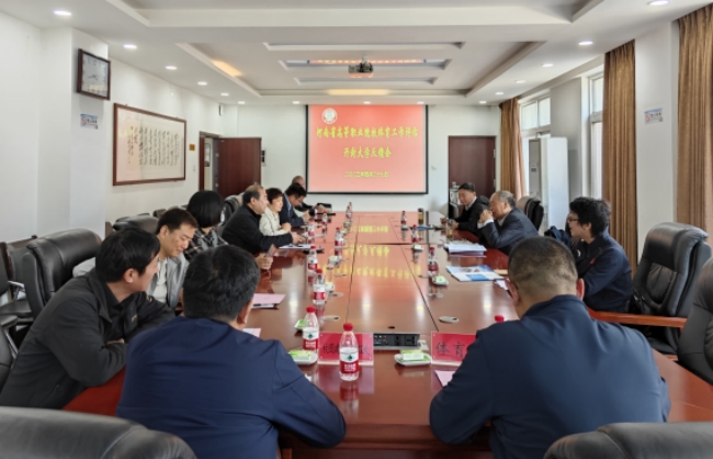 本站訊 4月27日,由鄭州西亞斯學院體育學院院長何祖新教授、洛陽理工學院體育教學部主任史鮮玲教授、信陽職業技術學院體育學院院長傅森教授組成的河南省高等職業院校體育工作評估專家組蒞臨我校,對學校體育工作進行評估。校黨委副書記、校體育運動委員會主任儲建新出席會議,學生工作部、團委、教務處、財務處、國有資產管理處、校園建設與管理處、體育部的負責人參加會議。