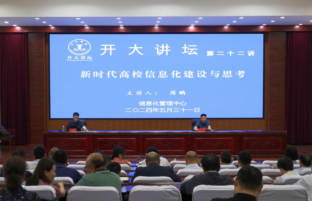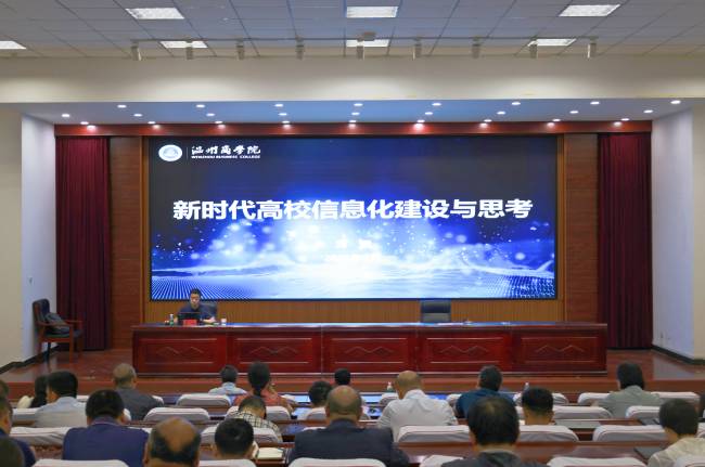 本站訊 5月31日上午,“開大講壇”系列報告第二十二講在行政樓第一會議廳舉行。溫州商學院信息服務中心主任、四川大學博士、教授周鵬,應邀作了“新時代高校信息化建設與思考”的主題報告。校領導萬是明、曾小平、石超亭及全體中層正副職干部到場聆聽。報告由副校長萬是明主持。