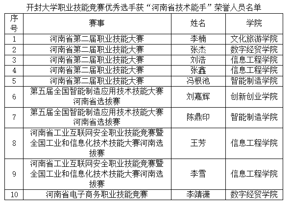 本站訊 近日,河南省人力資源和社會(huì)保障廳發(fā)布《關(guān)于授予職業(yè)技能競賽優(yōu)秀選手河南省技術(shù)能手榮譽(yù)的決定》,我校10人在職業(yè)技能競賽中成績優(yōu)異,被授予“河南省技術(shù)能手”榮譽(yù),并頒發(fā)榮譽(yù)證書和獎(jiǎng)?wù)隆?/span>