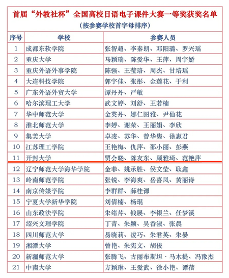 近日,上海外語教育出版社官方公眾號公布了首屆“外教社杯”全國高校日語電子課件大賽決賽獲獎名單,我校外國語學院教師賈會曉團隊榮獲一等獎。