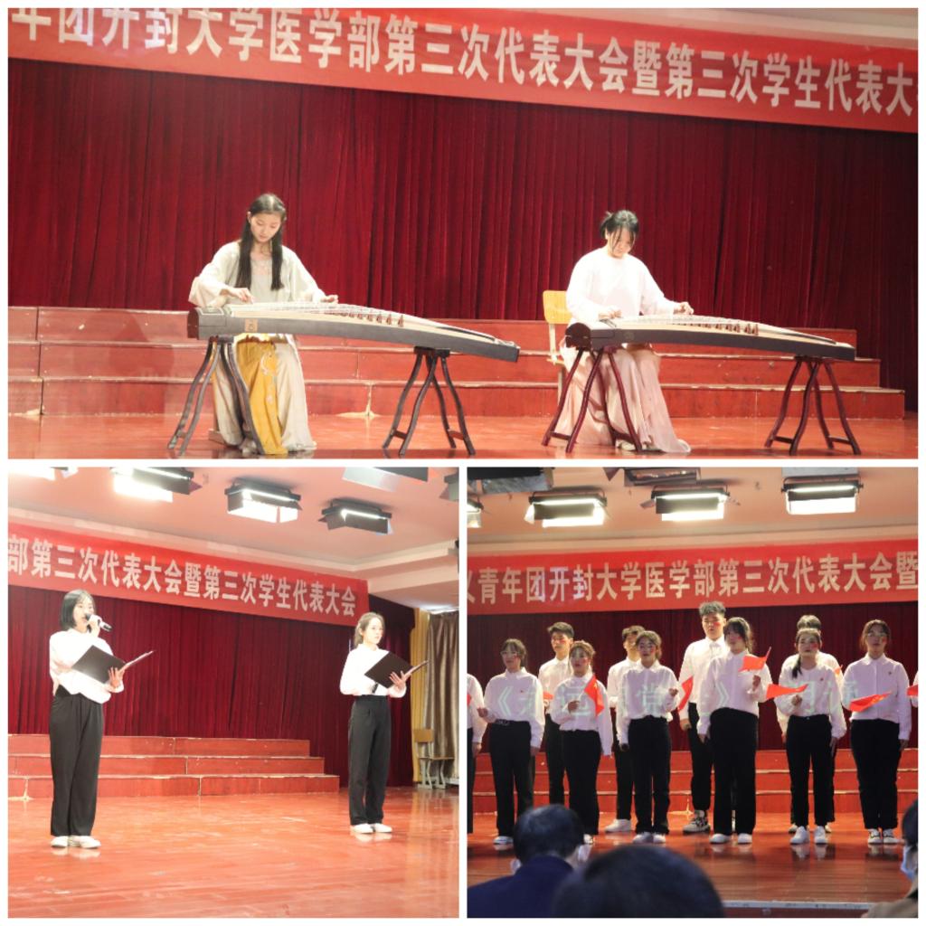 大會選舉了新一屆醫學部團總支委員會委員和書記、副書記;學生會委員與學生會主席團。期間,箏鳴社同學在計票時為代表帶來了古箏—《萬疆》,獲得了一致好評。伴隨著醫學部文體部同學帶來的《我和我的祖國》與《永遠跟黨走》,大會迎來了閉幕式。由開封大學醫學部黨支部副書記厲從志致閉幕詞,并且在大會上對新一屆委員會和全體代表提出了新的期望:牢記初心使命,勇擔時代重任,號召新一屆委員們帶領同學發揚求真務實的工作作風,牢記初心使命,抓住機遇,迎接挑戰,嚴格要求自己。彩虹和風雨共生,機遇與挑戰并存。