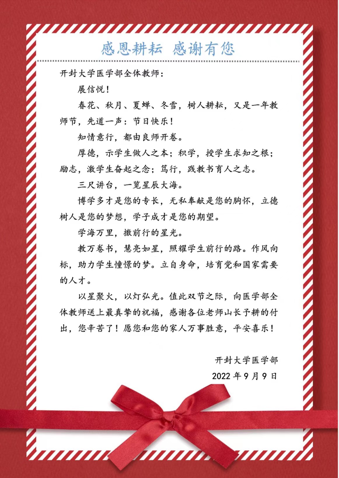 請查收!寫給醫(yī)學(xué)部全體教師的一封信