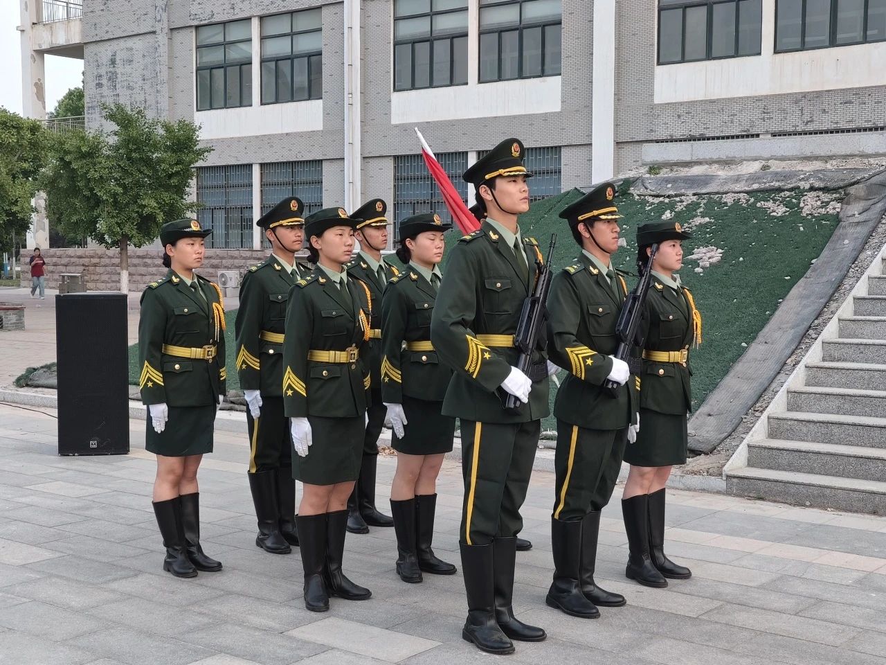 隨著音樂的響起,儀仗隊(duì)的旗手們開始了他們有條不紊的動(dòng)作,他們每一個(gè)細(xì)節(jié)都彰顯著對(duì)國(guó)旗的熱愛和尊重。同學(xué)們飽含熱情目視前方,心懷壯志。