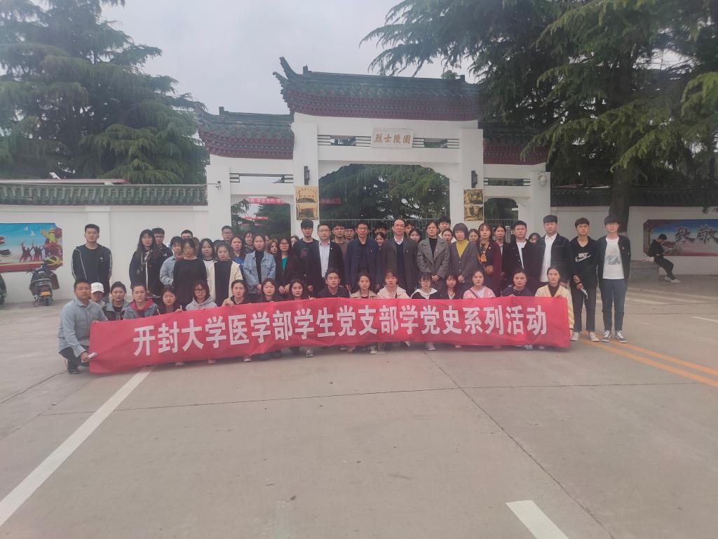 今年是中國(guó)共產(chǎn)黨成立100周年,為悼念革命烈士,緬懷先烈的豐功偉績(jī),教育學(xué)生傳承紅色基因,繼承革命先烈的光榮傳統(tǒng),弘揚(yáng)民族精神,發(fā)揚(yáng)先烈遺志,為進(jìn)一步引導(dǎo)學(xué)生厚植愛(ài)黨、愛(ài)國(guó)、愛(ài)社會(huì)主義的情感。4月22日下午,醫(yī)學(xué)部學(xué)生黨支部組織教師黨員、學(xué)生黨員及發(fā)展對(duì)象前往開封市革命烈士陵園開展祭掃瞻仰活動(dòng)。