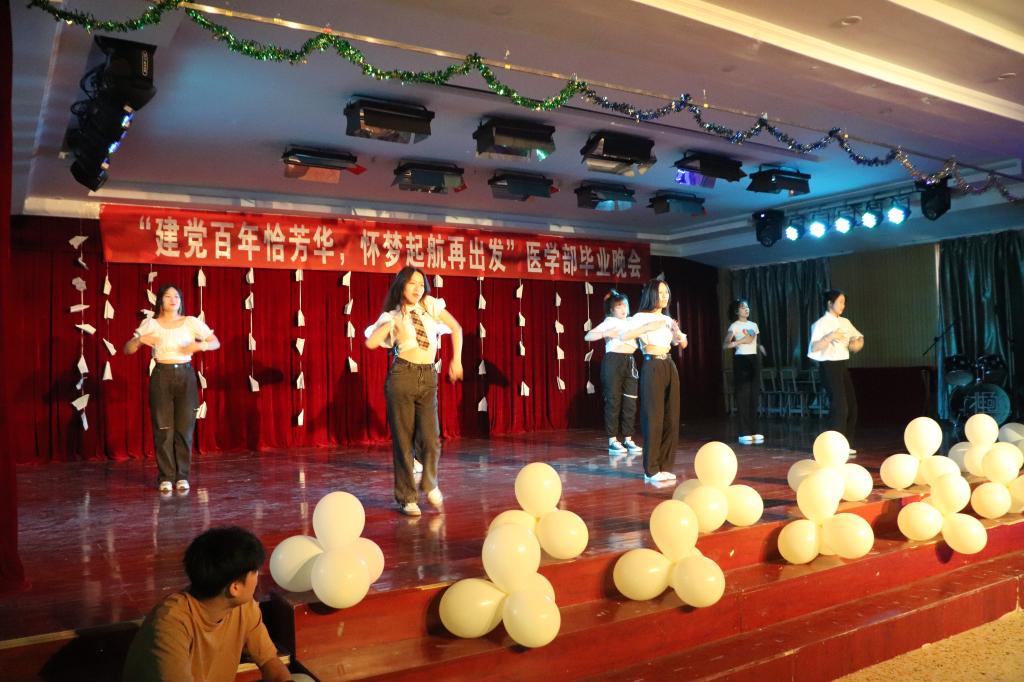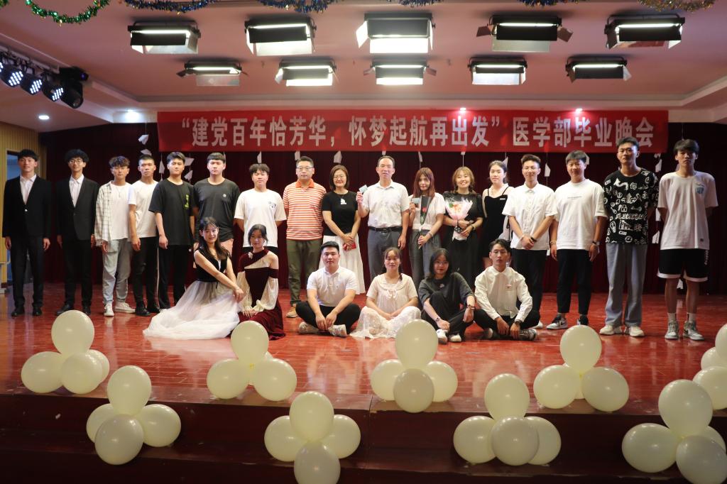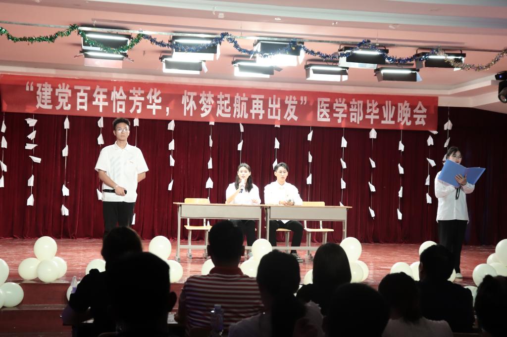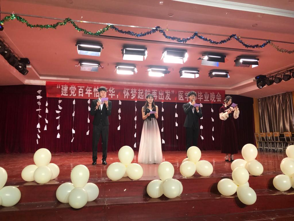時光荏苒,且待芳華。6月23日晚7點,以“建黨百年恰風華,懷夢起航再出發”為主題的慶祝建黨100周年暨歡送2021屆畢業生晚會在醫學部6樓多媒體廳舉行。院領導謝旭光、徐志強出席晚會。學生管理老師及全體輔導員老師,與2021屆畢業生共同觀看演出。