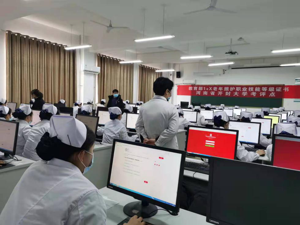 為深入貫徹《國家職業(yè)教育改革實施方案》和教育部等四部門印發(fā)《關于在院校實施“學歷證書+若干職業(yè)技能等級證書”制度試點方案》,按照教育部“1+X”證書制度試點工作推進要求,2020年12月16日、17日,我部開展了“1+X”老年照護職業(yè)技能等級證書(中級)考評工作。開封大學教務處處長馮天才親臨現(xiàn)場,對本次考評工作進行督導,強調(diào)了考場紀律和工作要求。本次考評分為理論和實操兩部分,醫(yī)學部共有50名學生參加,通過率100%。
